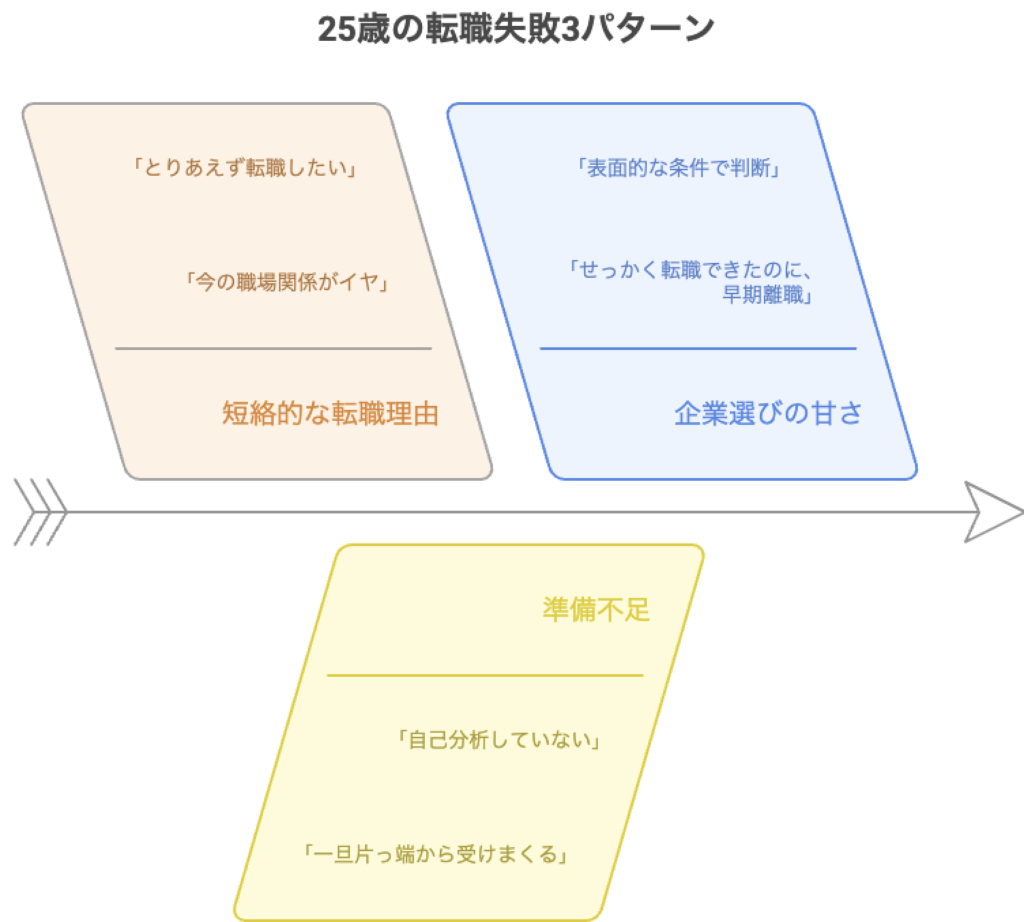 3つの失敗パターンを理解しておくことで、転職で注意すべきポイントが見えてきます。