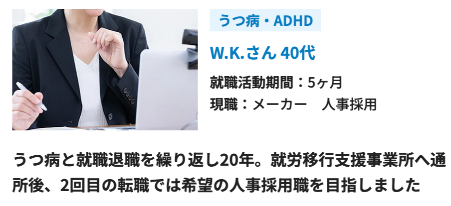 ADHD専任のキャリアアドバイザーが在籍しており、転職活動だけでなく入社後も継続的なサポートを受けられるのが特徴。
