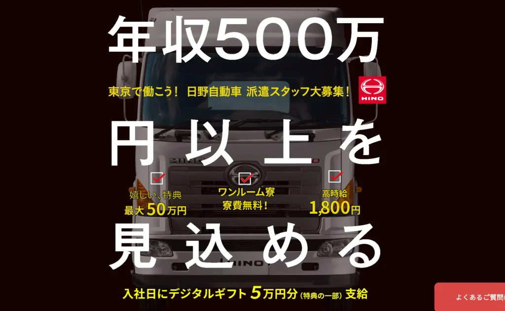 部品メーカー以外で期間工を検討している場合は、ぜひ日野自動車も候補に入れてみることをおすすめします。