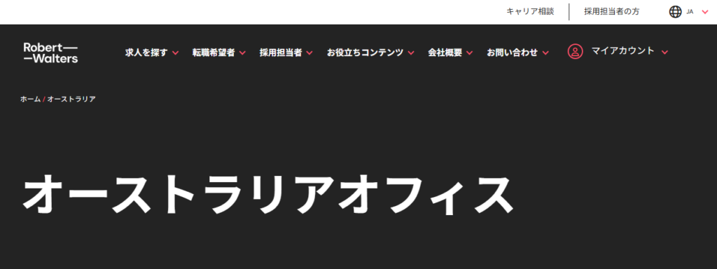 「ロバート・ウォルターズ」は、オーストラリアの主要都市(シドニー、メルボルン、パースなど)に拠点を持つ転職エージェントです。