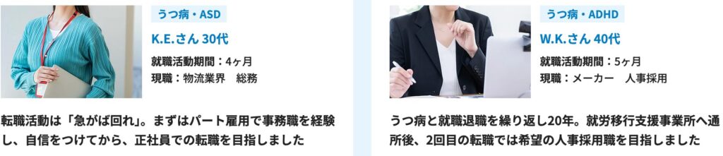 上記のように、うつ病の方の転職実績が豊富に載っていました。